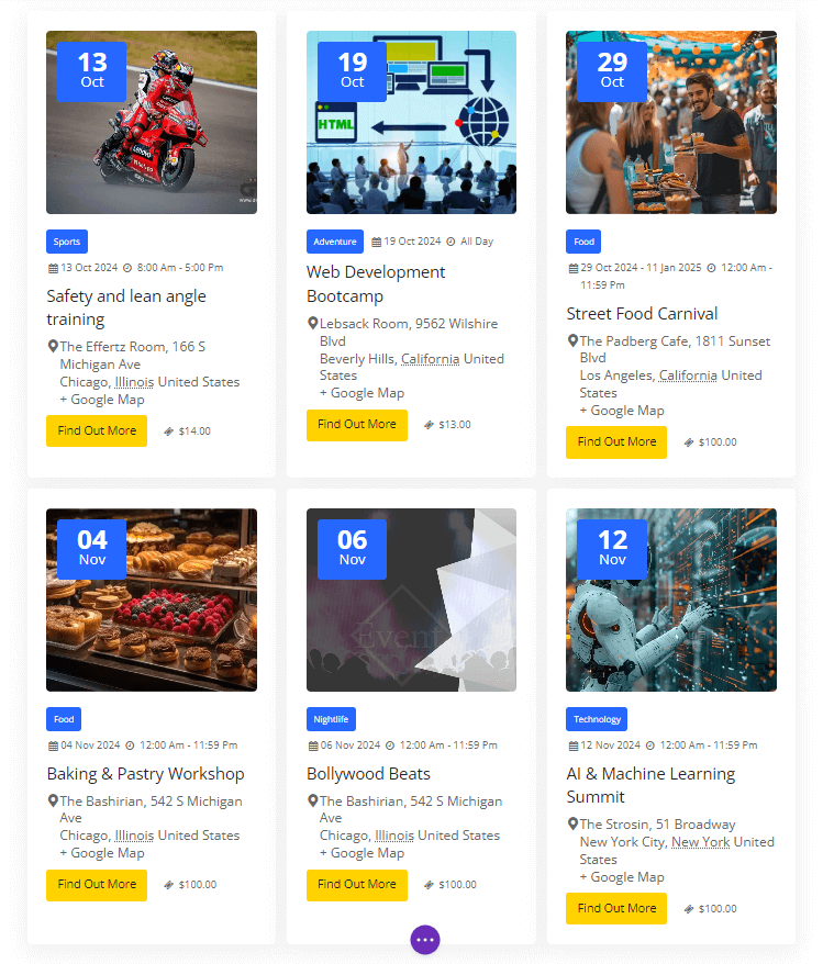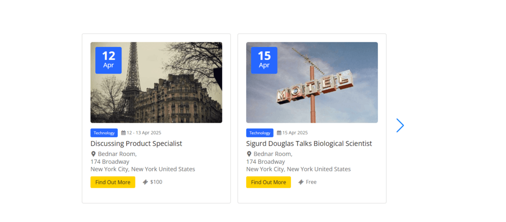 This template will help you showcase your events in a carousel, with each event displayed as a carousel.