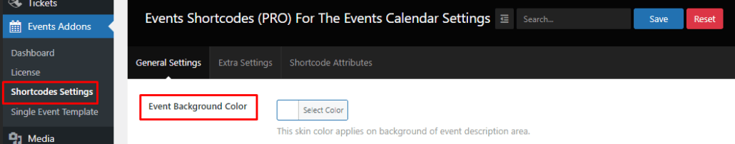 5.) Event Background Color:- The Event Background Color setting will allow you to change the background color of the event layout.