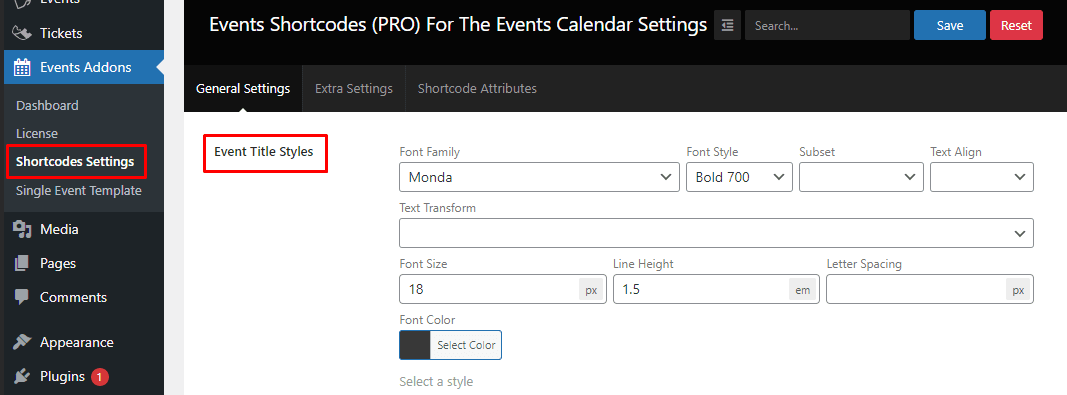 6.) Event Title Styles:- Event Title Styles are used to change Title Font Family, Font Style, Subset, Text Align, Text Transform, Font Size, Line Height, Letter Spacing, and Font Color.