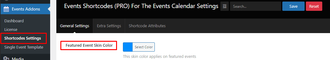 3.) Featured Event Skin Color:- The Featured Event Skin Color setting will allow you to change the main skin color of your featured events.