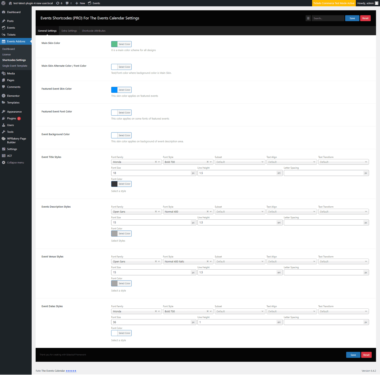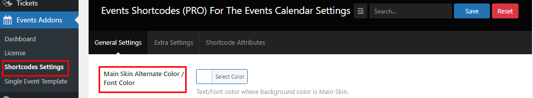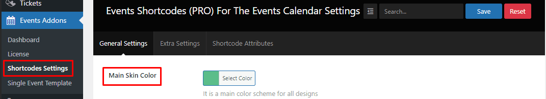 Under this setting tab, you can set color and typography settings for your event layouts. These settings will create the main color scheme for all designs you create using this plugin.