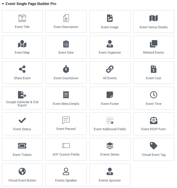 5. Event Single Page Widgets