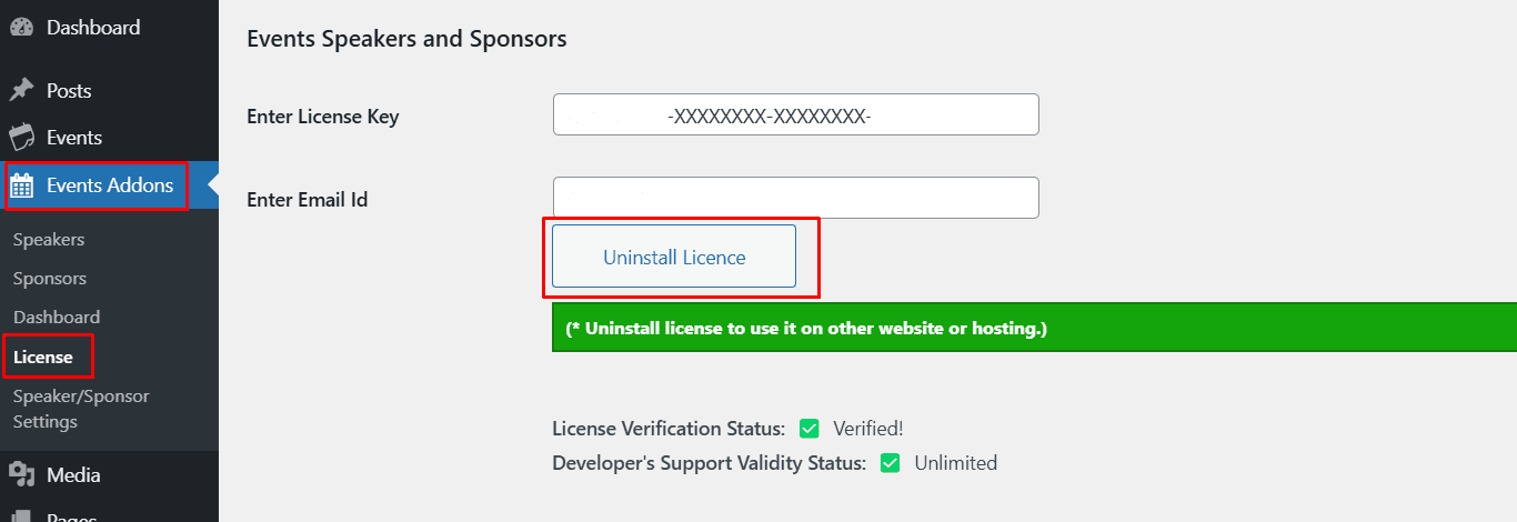 2.) Click on Uninstall License button to deactivate the license.