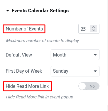 - Hide read more link:- By default, the event popup has read more buttons. You can hide it by enabling the hide read more link option.