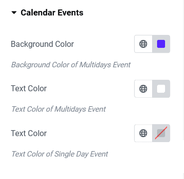 - Text color (multiday events):- This option will change the text color of multiday events.
