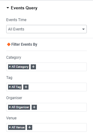 This option lets you filter events based on their time. You can choose between:- All Events: Displays all events, regardless of date.