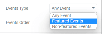 - Events Type: This setting will help you show featured, non-featured, or any events.