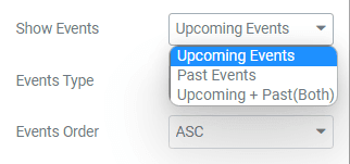 - Show Events: This setting will help you to decide whether to showcase past events, upcoming events or both.