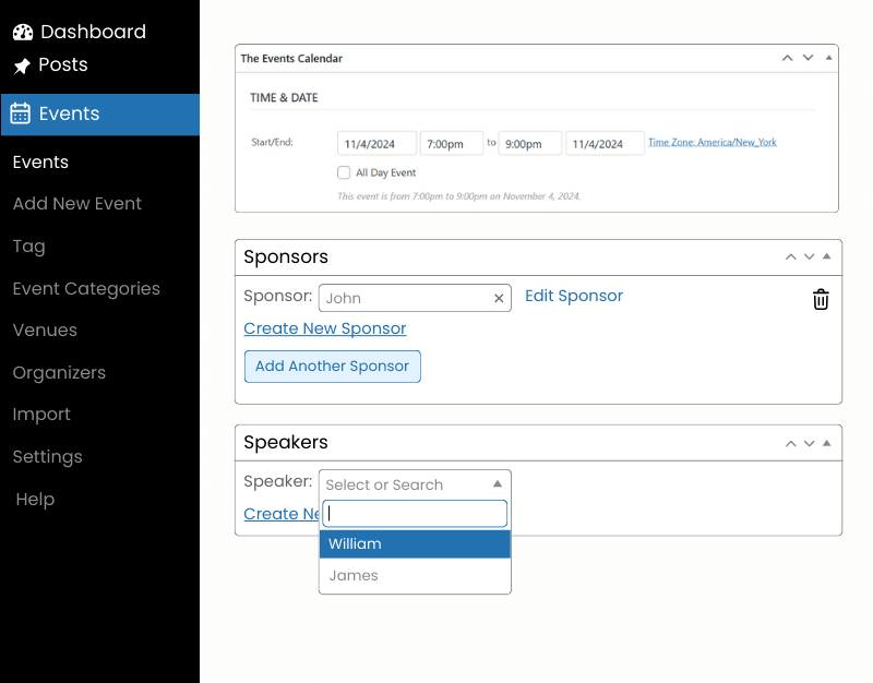 Highlight your event’s sponsor by including their details like sponsor names, logos, and links to their websites on the event page or with our other addons.